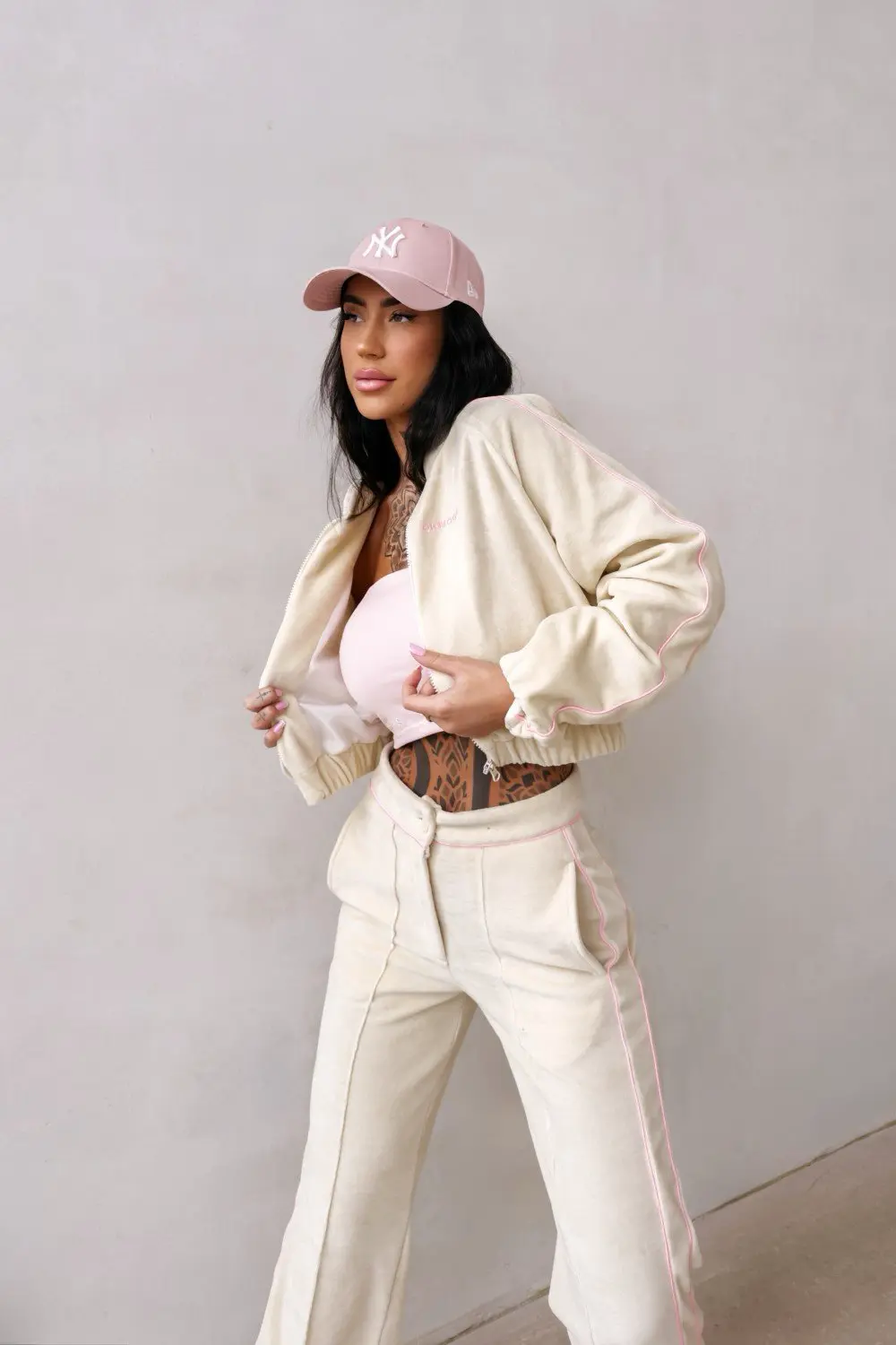 Ez a rövid bomber a sportos stílust finom luxussal ötvözi. A selymesen puha velvet (bársony) anyag egyszerre látványos és kényelmes, ezért könnyen a kedvenc daraboddá válhat.