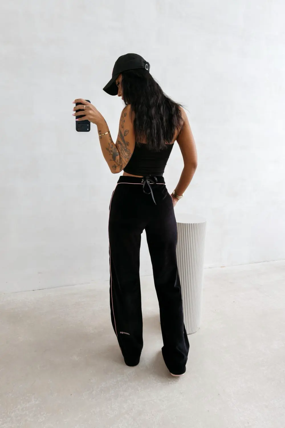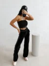 Bársonyos puhaság, lágy esés és kifinomult részletek – egy nadrág, ami a kényelmet stílussá emeli, otthon és az utcán is.